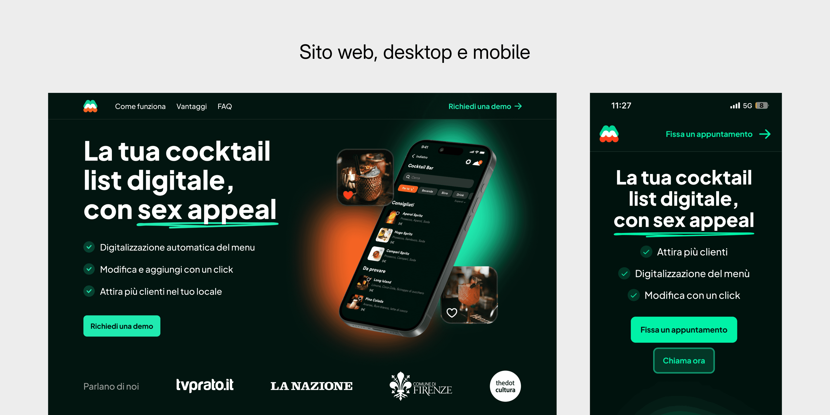 Una volta sviluppato il prodotto, abbiamo ottenuto i primi clienti ma serviva un portale per acquisirne di nuovi. Ho quindi lavorato a una brand identity per la promozione social e sviluppato il sito web.