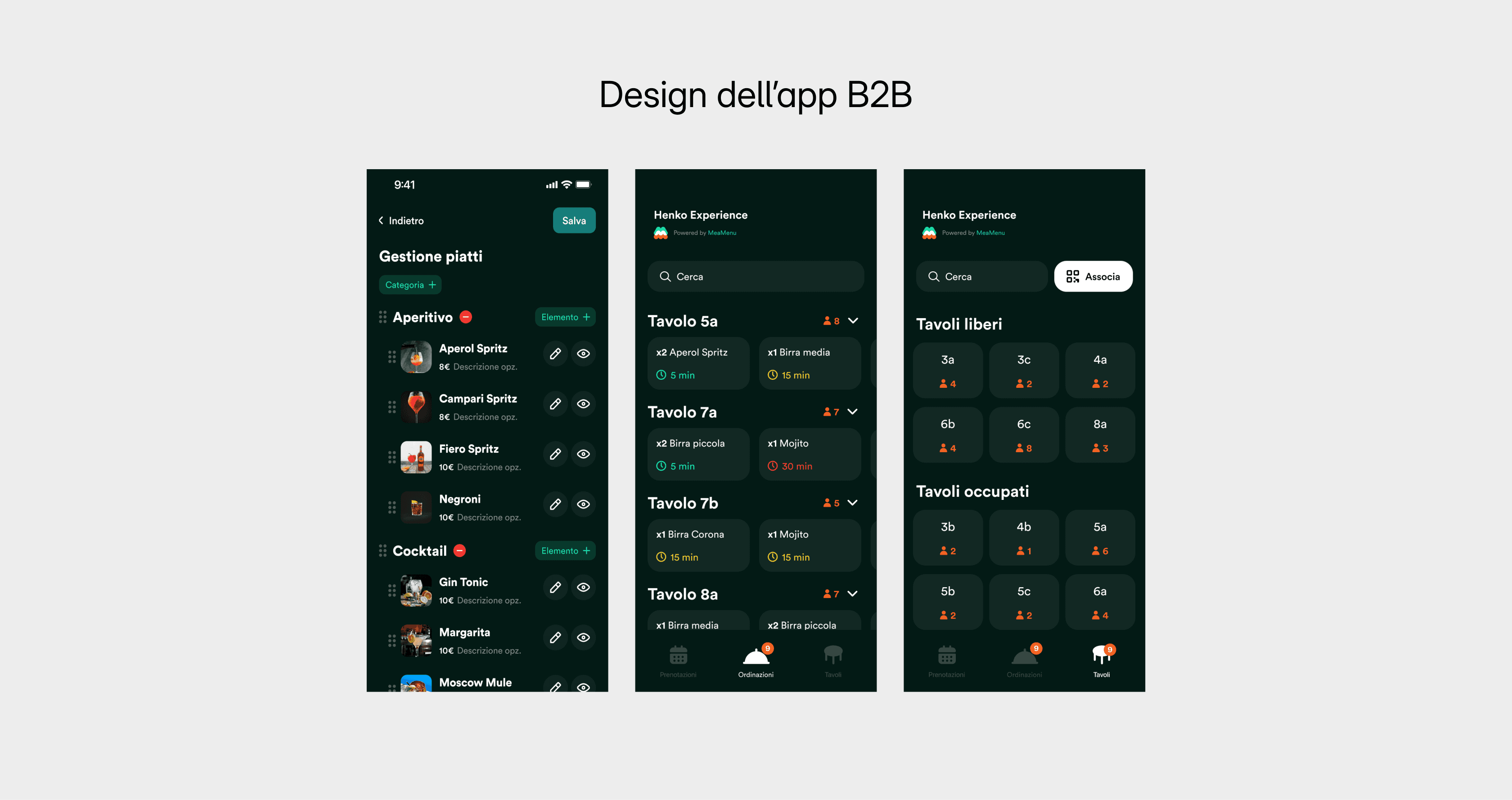 Una volta definito target, problemi e opportunità, siamo passati all’azione. Abbiamo sviluppato sia un app per i clienti dei locali, dover poter ordinare i drink, sia un app di backend per i ristoratori, dove potevano gestire i tavoli e le ordinazioni.