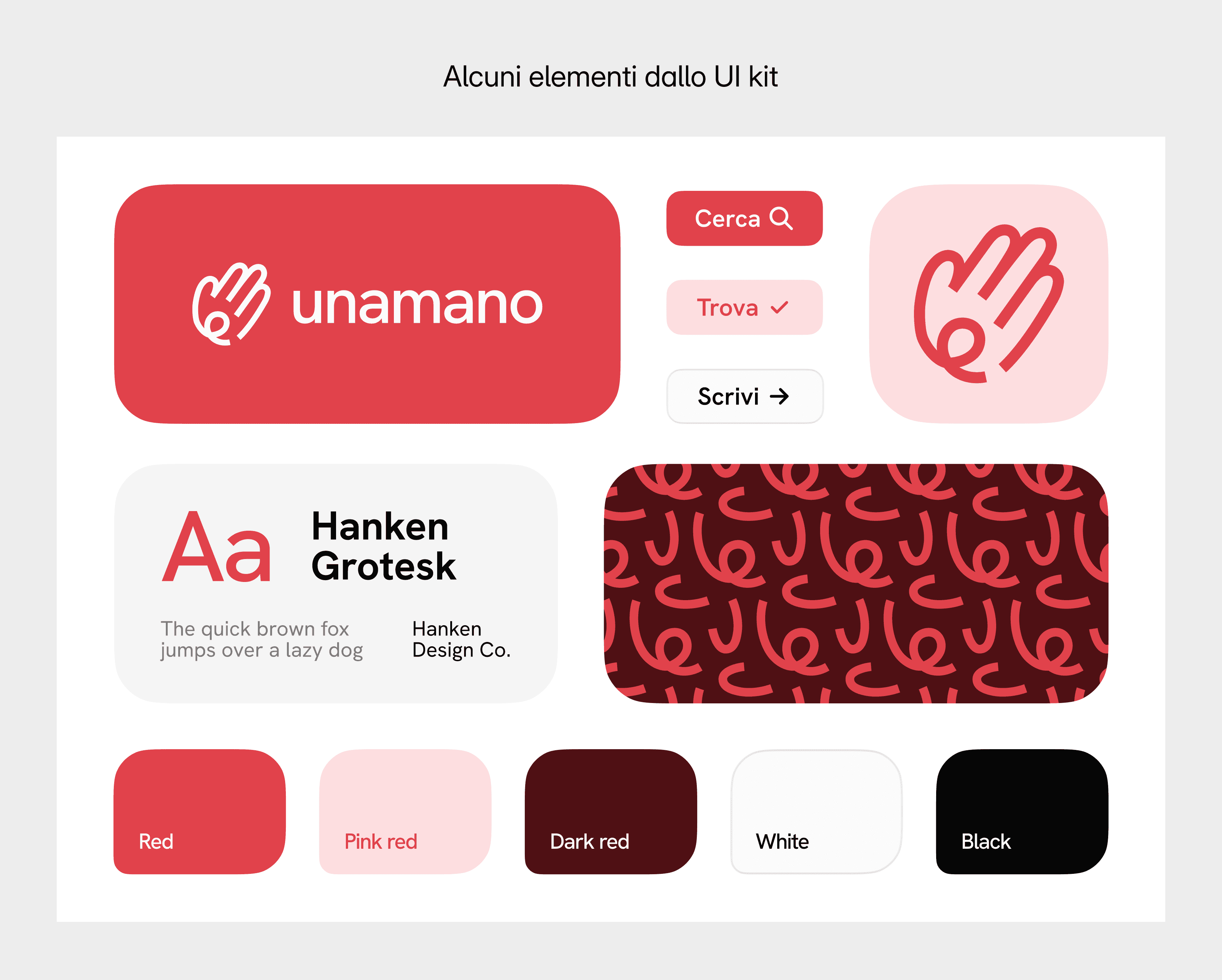 Per rendere il processo scalabile fin dall'inizio, e poter iterare con maggiore velocità ad ogni feedback raccolto dagli utenti, ho creato una piccola brand identity e UI kit, in modo da riutilizzare font, colori, logo, e componenti.