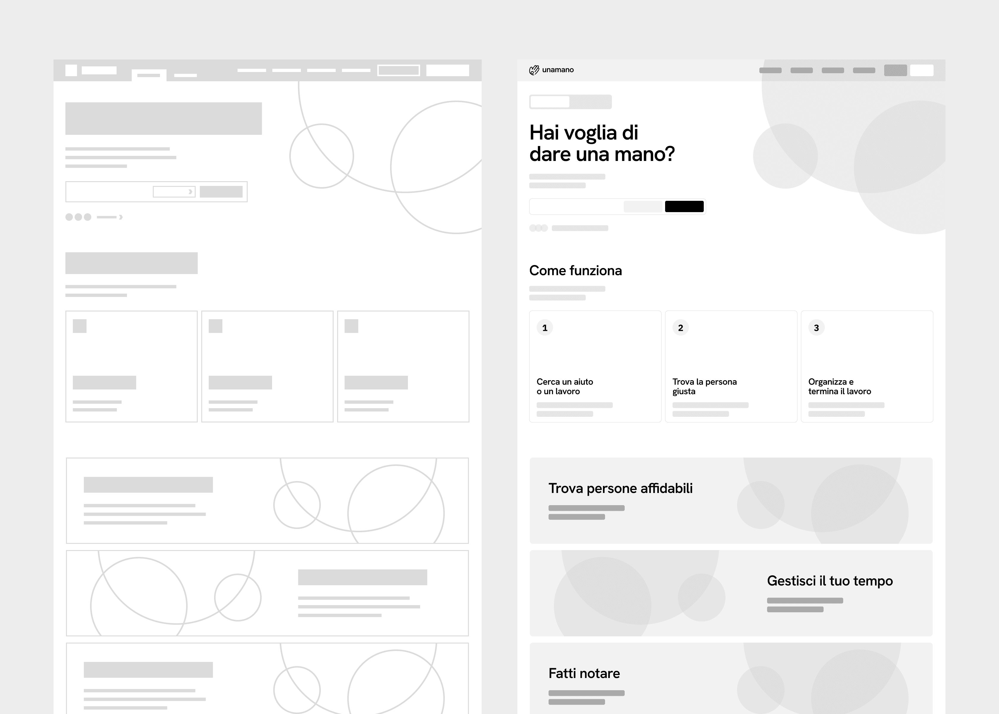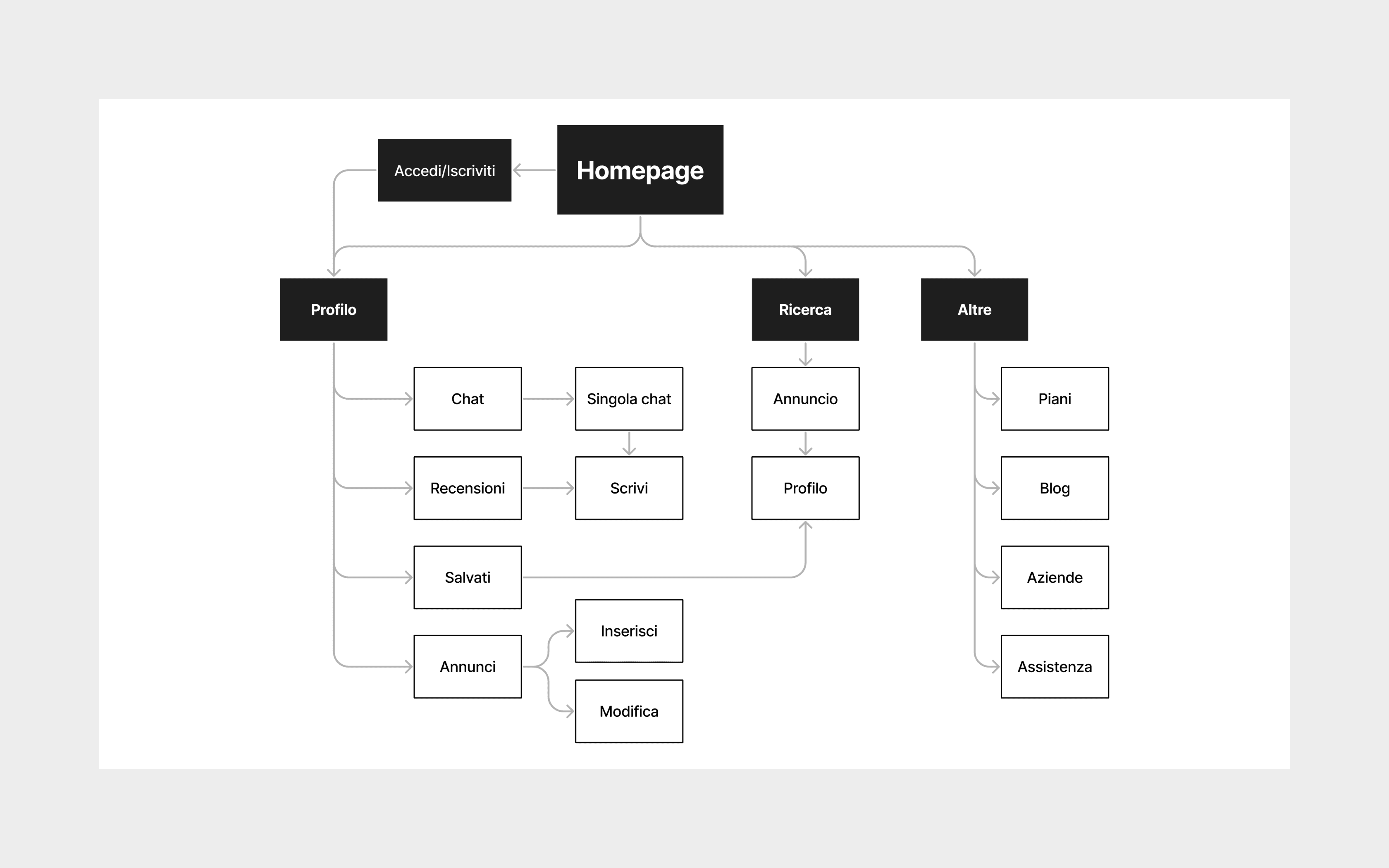 Ho sviluppato delle user personas che rappresentassero studenti come Andrea (uno studente di ingegneria alla ricerca di un lavoro flessibile) e utenti come Maria (una professionista impegnata alla ricerca di aiuto domestico), basandomi su persone reali. La mappatura dell'architettura, invece, ha aiutato a identificare la struttura della piattaforma.